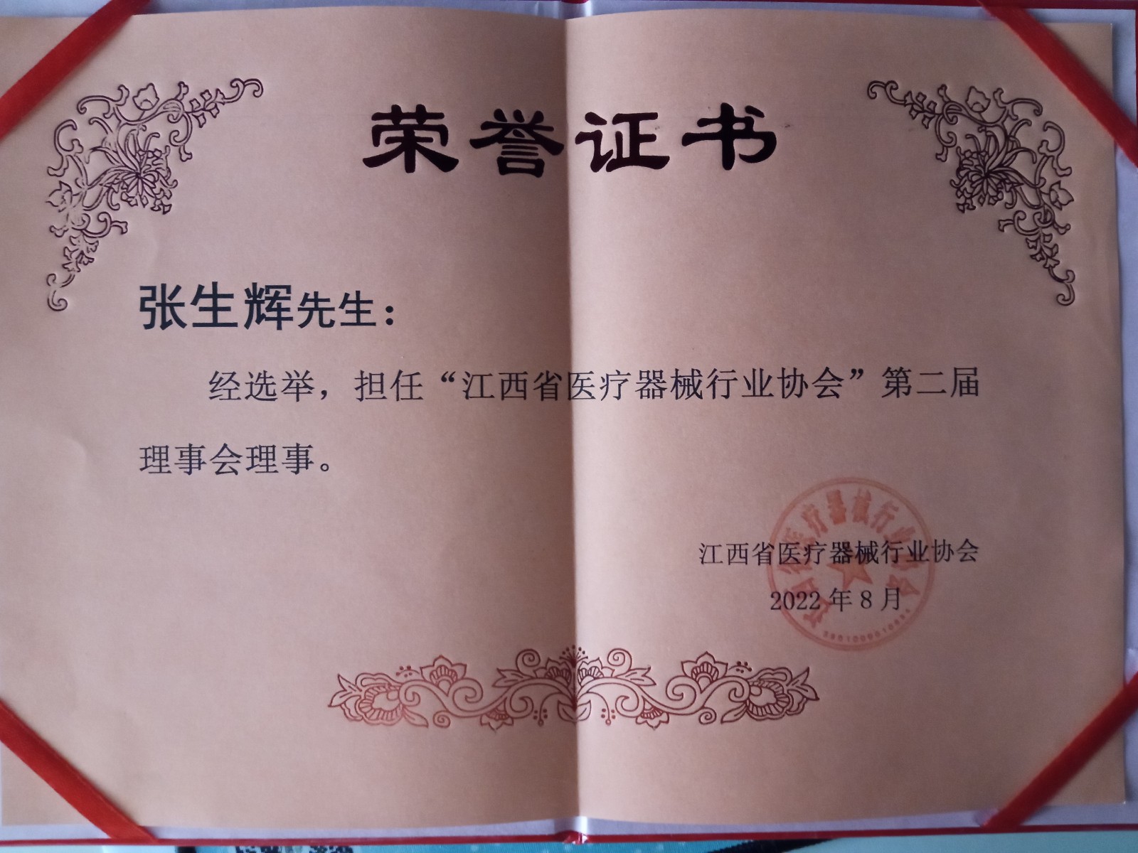 经选举,董事长张生辉先生担任“江西省医疗器械行业协会”第二届理事会理事!