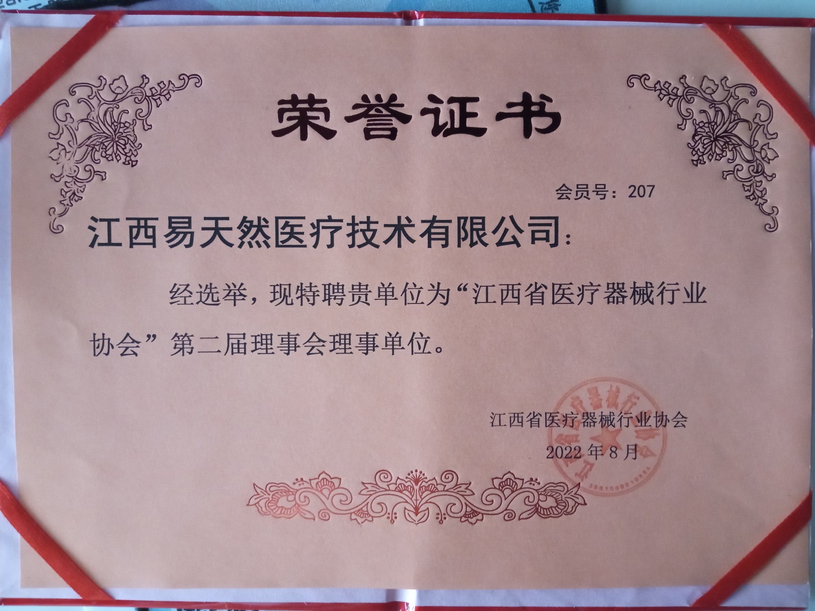 热烈祝贺江西易天然医疗被特聘为“江西省医疗器械行业协会”第二届理事会理事单位